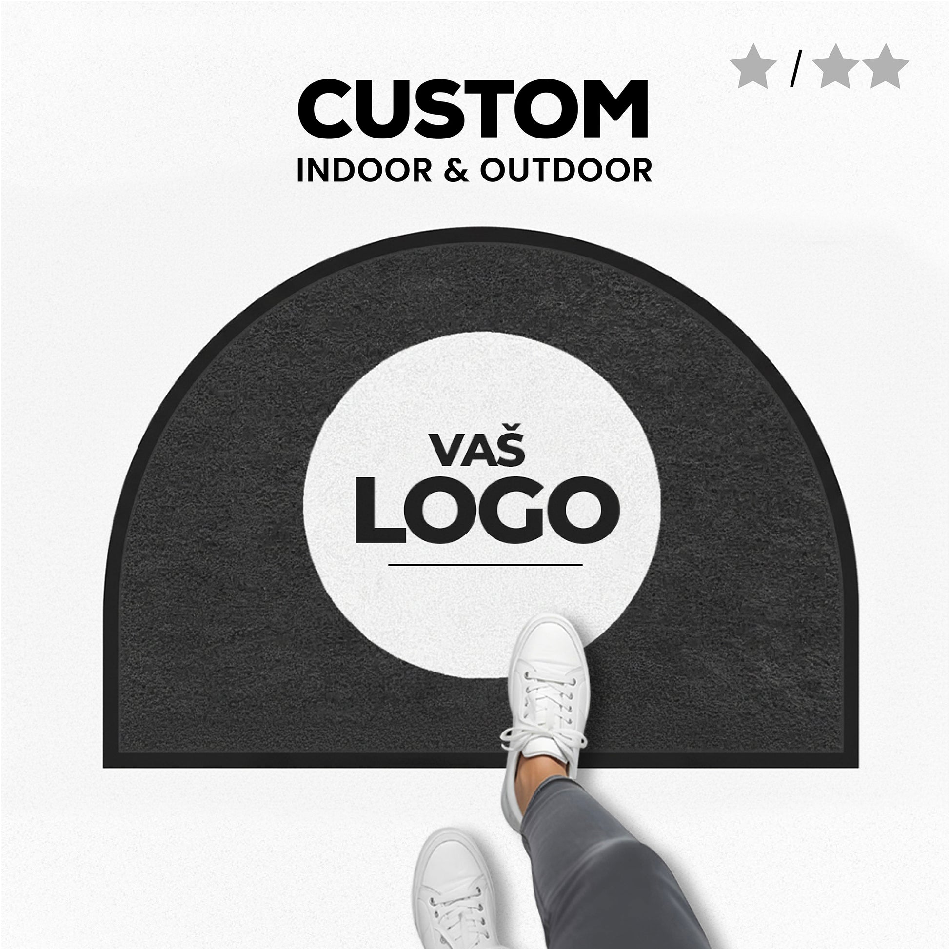 Seventex Logo Custom je po meri izdelan predpražnik, zasnovan za prostore in želje, kjer klasične pravokotne oblike niso dovolj. Omogočamo izdelavo v praktično kakršni koli obliki – krog, polmesec, trapez, romb ali popolnoma unikatna oblika po naročilu – brez kompromisov pri funkcionalnosti ali vizualni podobi.